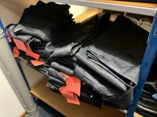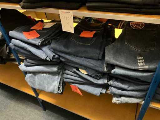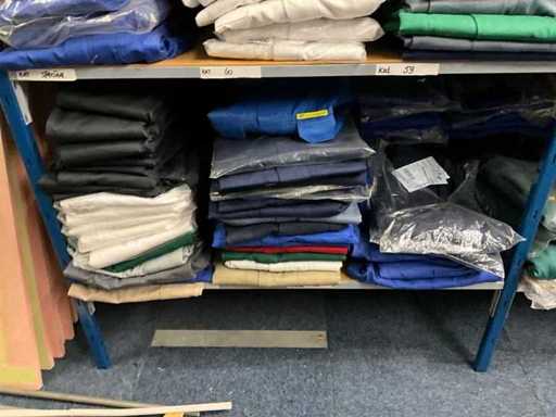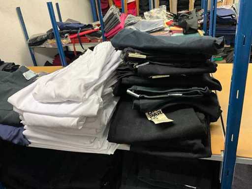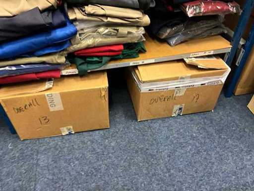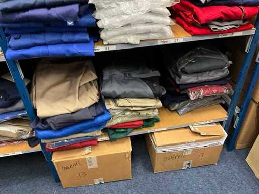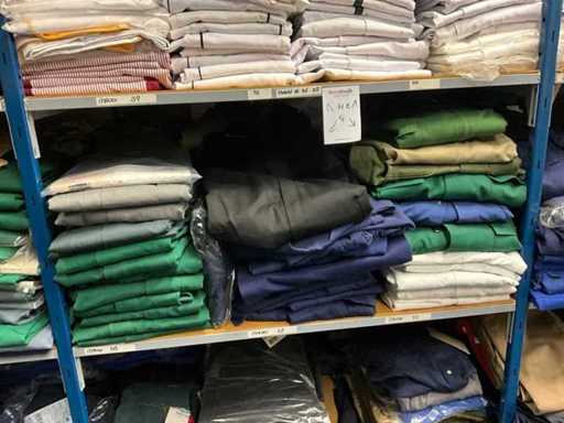 Consisting of: approximately 490 baker's trousers, approximately 200 work overalls, approximately 100 jeans and approximately 180 work trousers. In various sizes, brands and colors