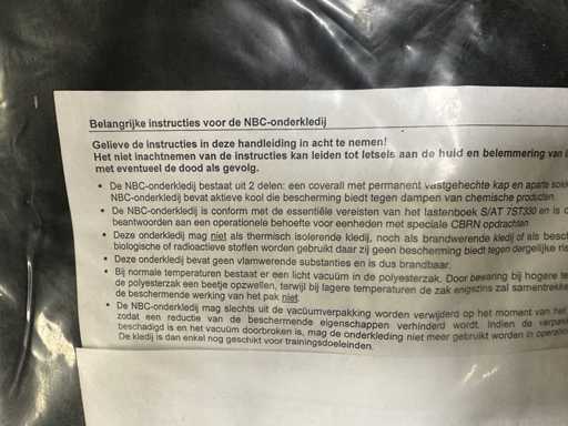 This batch consists of Nuclear, Chemical, Bacteriological and Radioactive protective clothing. Partly still in the packaging.
