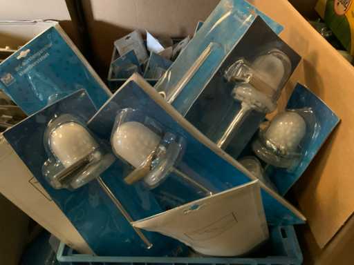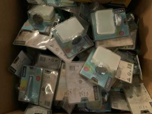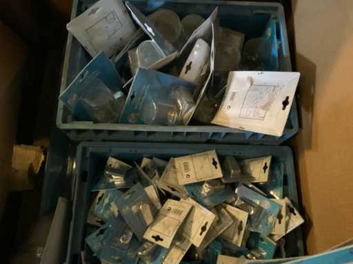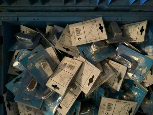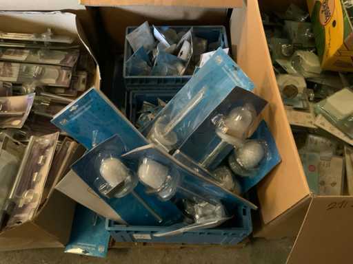 - Palletdoos gevuld met wandhaken, glashouders, toiletborstel met houder en zeephouders