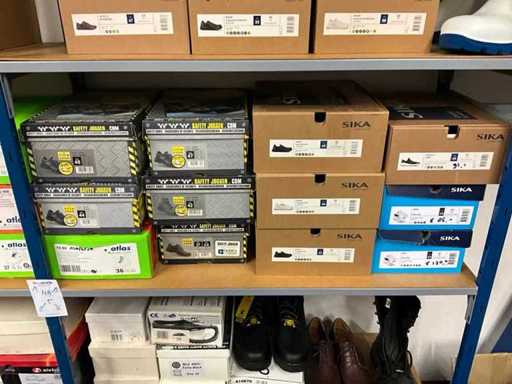Approximately 110 pairs, various brands such as sika, atlas, safety jogger, aimont, various sizes 35 to 48.