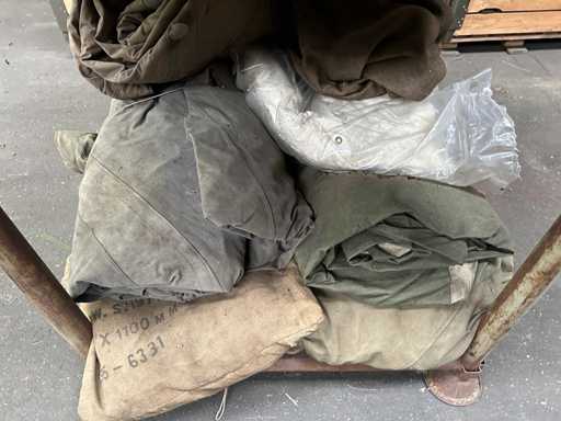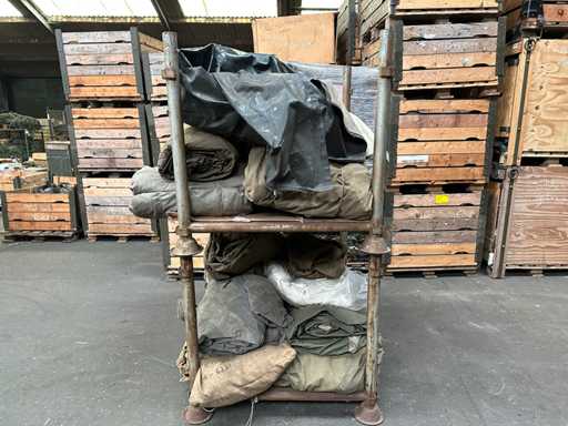 This party consists of two trestles with tent cloths and tarpaulins.