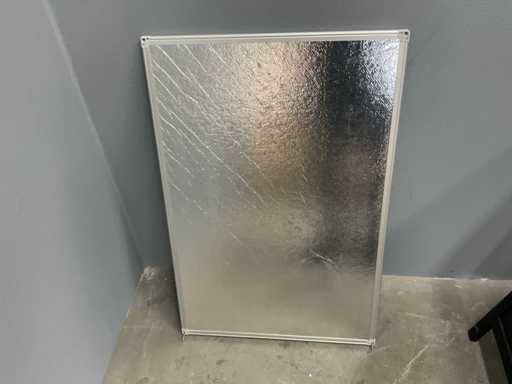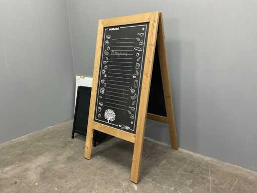 Used. Black plate is 85cm high 55cm wide. Whiteboard is 90cm high and 60cm wide.