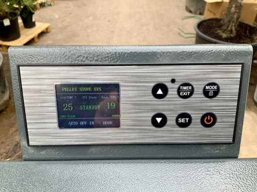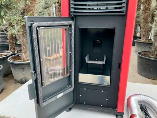 Equipped with a storage bunker of 10 kilograms, 230V 50Hz, flexible hose and remote control, pellet stove is unused.