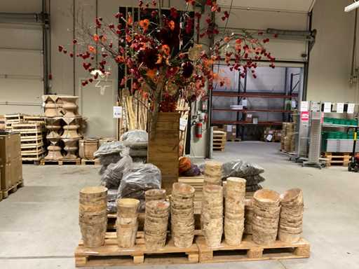 Pine cones, birch bowls and decoration on column