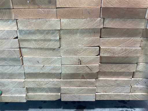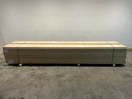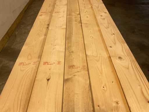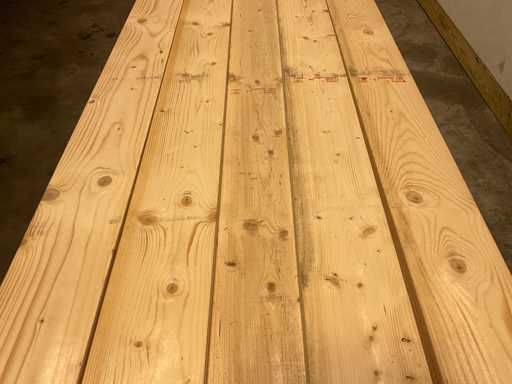 Planed spruce beams, with a size of 450 x 20 x 5 cm each.