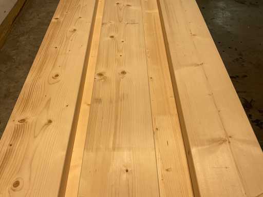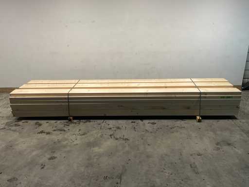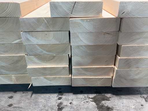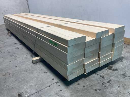 Planed spruce beams, with a size of 450 x 25 x 7.5 cm each.