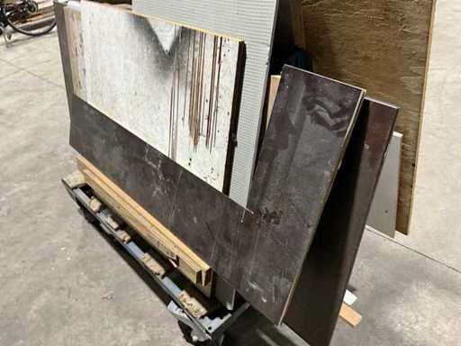 Cart 105cm high, 2x clamping bar, 2x swivel wheel and 2x fixed wheel, including sheet metal on cart