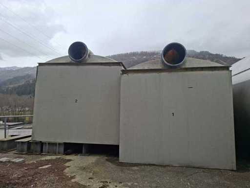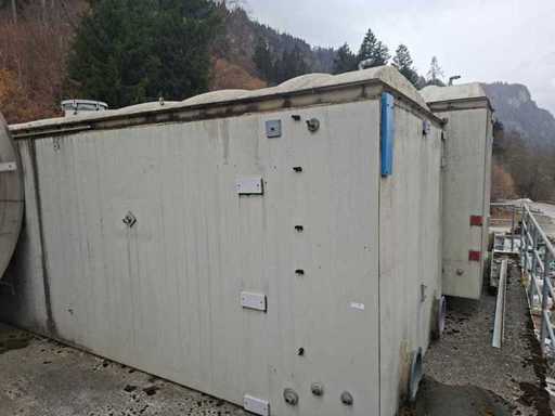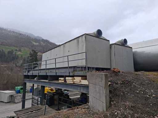 The plant was in operation in Switzerland until 2020 at a spice manufacturer. It consists of the 3 containers that are connected to each other by cables. The powerful blower is frequency-controlled and sucks the air through the filters. All the technology is installed in one of the containers. The connecting lines are also included, but are no longer completely complete with certainty. (90% ). The containers must be picked up in 7130 Ilanz. Access for trucks and cranes is guaranteed.