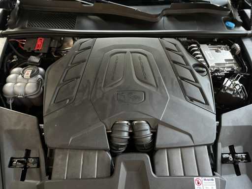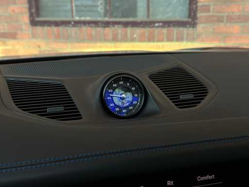 The Porsche is equipped with the following additional options: Air suspension (Porsche Active Stability Management [PASM]), Rear-axle steering, Glass panoramic roof, Luxury leather interior, Carbon interior finish, Door sill mouldings Carbon, Alcantara steering wheel (Race-Tex), Alcantara headliner (Race Tex), Sports exhaust (switchable), Soft-Close doors, Comfort key (Keyless Entry), Sport-Chrono package, Sport-Design package black, BOSE Surround Sound system, Wireless phone charger, Memory seats, 18-way seats, Front seat heating, Seat cooling, Porsche logo in headrest, Steering wheel heating, Ambient lighting, Privacy Glass, Acoustic glass, Tinted HD Matrix LED headlights (PDLS+), 360* camera with Top View, Parking Assist (IPA), Adaptive Cruise Control (InnoDrive) with Active Lane Assist, Lane Change Assist and Blind Spot Detection.