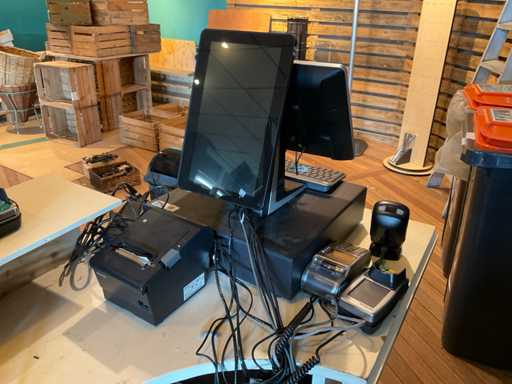Subject, catering touchscreen with display, cash drawer, Zebra GK420d label printer, Symbol note scanner, Verifone ATM, Epson label printer