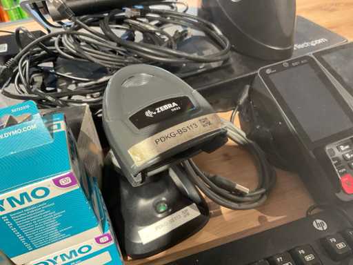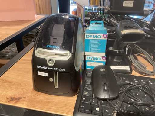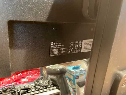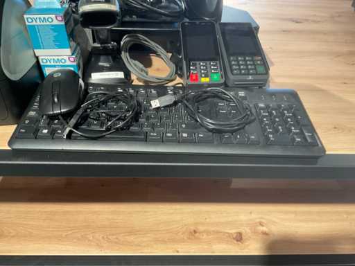 Consisting of 1 HP screen, type: elitedisplay e223, on StarTech.com elevation keyboard, mouse, CCV ATM with display, zebra scanner, type: DS22 and Dymo label printer, type Labelwriter 450 Duo.