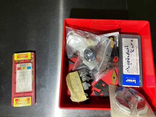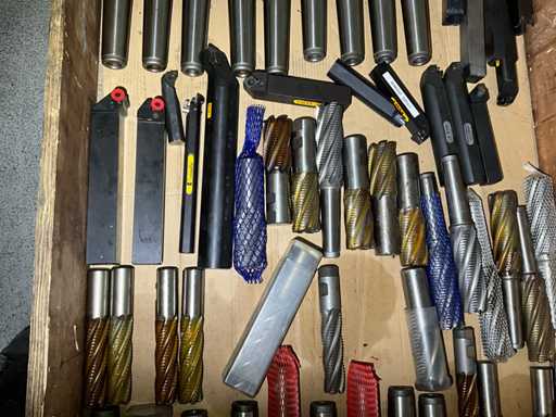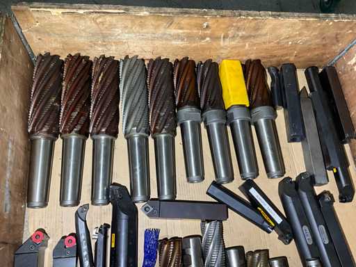 Various sizes and designs, +/- 47 milling cutters, +/- 14 turning steels, including various interchangeable plates, partly sharpened / as good as new, content 1 pallet, see photos for more details