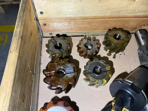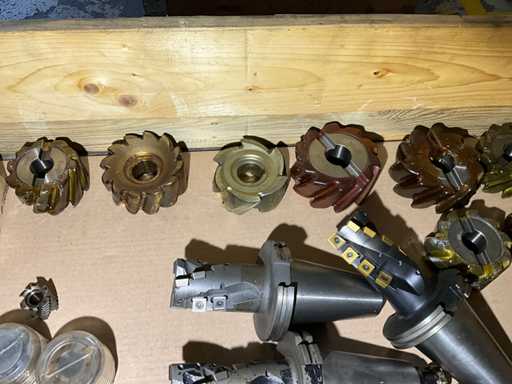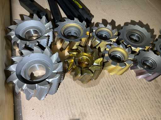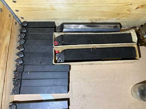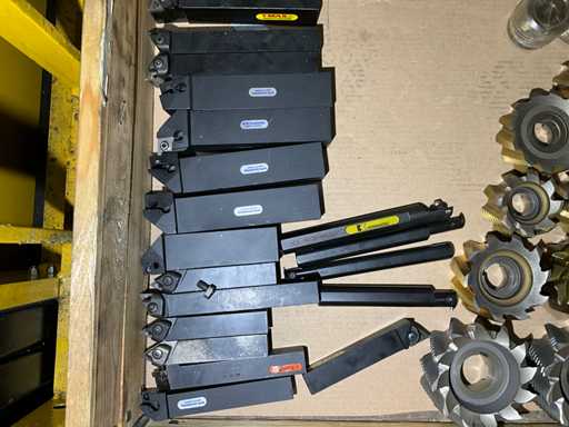 Various sizes and designs, +/- 36 milling cutters, +/- 32 turning steels, partly sharpened / as good as new, content 1 pallet, see photos for more details
