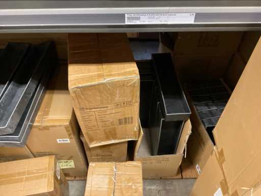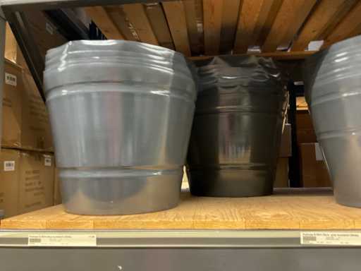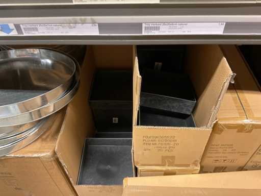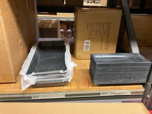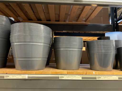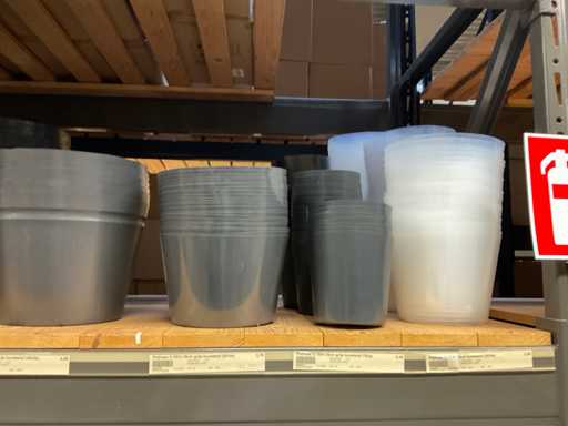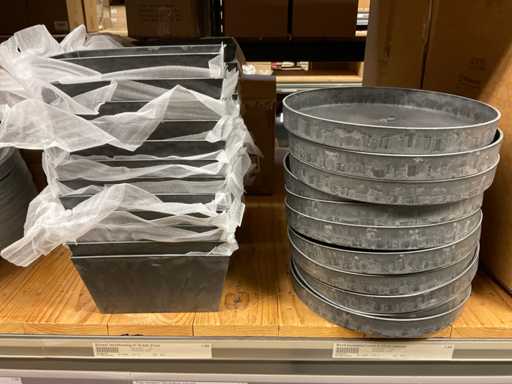 Consisting of pot sleeves in various sizes, plates and bowls, all in 1 shelf section.