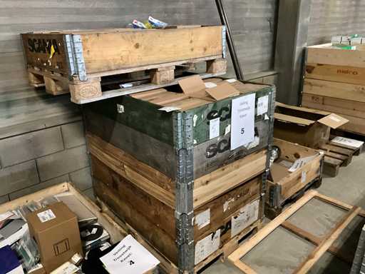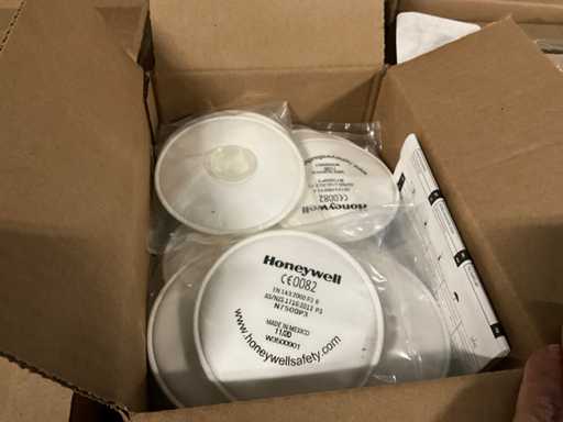 uit 2 palletkisten, onder andere 70 dozen Honeywell P3 filters á 10 stuks, beschermhoesjes voor gehoorbeschermers, securfit X5 vizier, etc, betreft ongebruikte producten, Let op! zonder pallets of palletranden