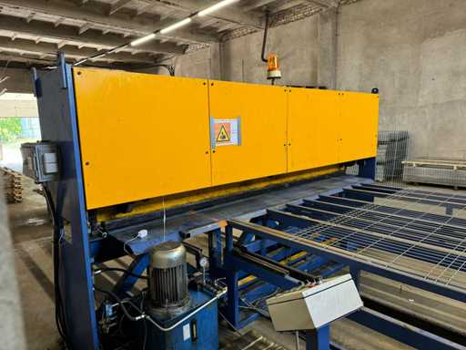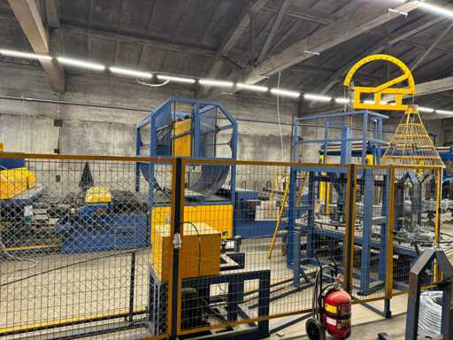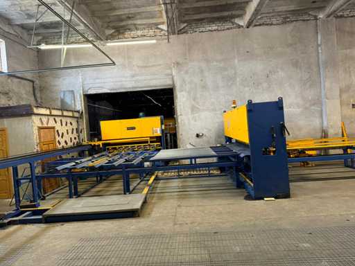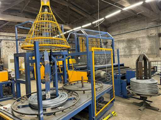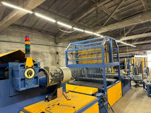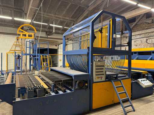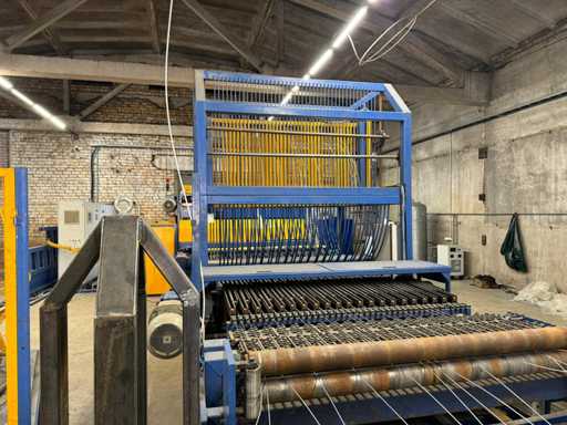 production of mesh panels and 3D/bent mesh panels; mesh width: 2100mm; wire dia. longitudinal + cross wires: 3-6mm; line wire spacing min.: 50mm; cross wire spacing min.: 25mm; SPM: up to 140; 5 x 250 KVA transformers; max. number line wires: 42 with 50mm wire spacing; max. length of panels: 6000mm (20); line consists of: payoff system; straightening-propulsion for longitudinal wires; loop LAR; powered straightening; cross wire payoff unit; cross wire loop; auto cross wire feed; welder; mesh trimming shear; mesh bending press; mesh ejection + stacking-turner; exit rolls. Detailed technical specification please find in attached pdf document