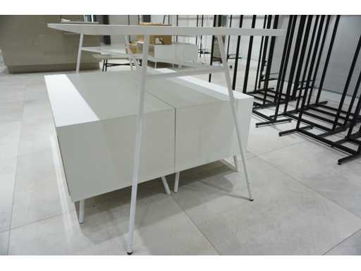 Table: 160x80x85 cm and 2x drawer unit 110x50x50 cm.