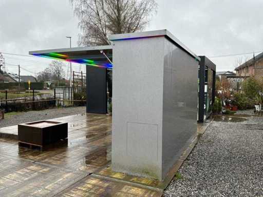 Attention: Removal entirely at the expense of the buyer. The structure cannot be dismantled. You must provide a suitable flatbed trailer for transport as well as a crane for moving.