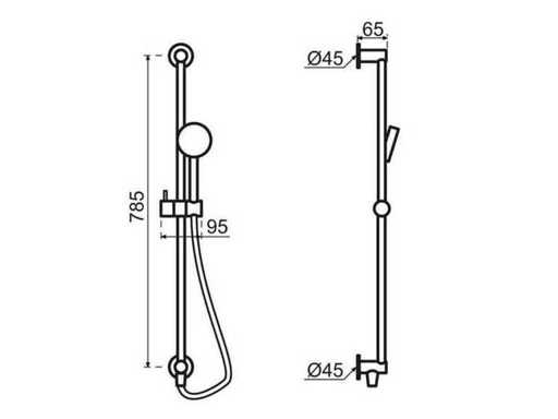 Unused in box; Number of spray settings: None; Finish: Black coated; Width 95; Product height 785; KIWA quality marks