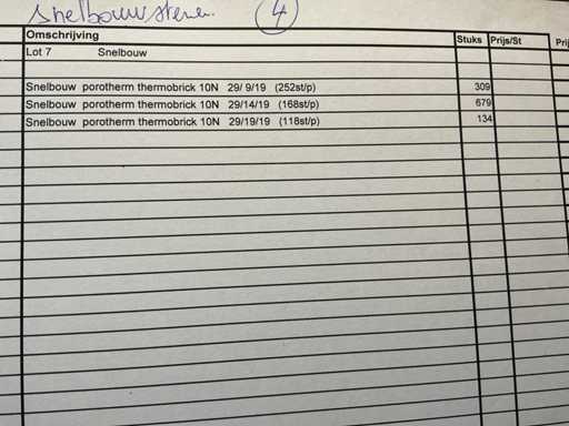 Quick-build porotherm thermobrick 1ON (29/9/19 252 pieces), (29/14/19 168 pieces), (29/19/19 134 pieces) see photo