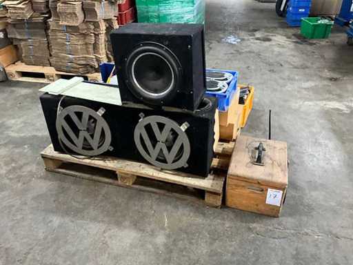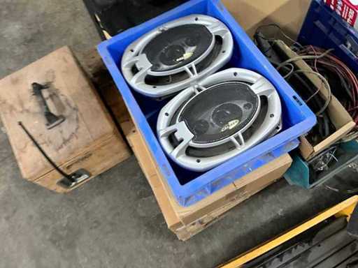Various boxes with speakers, carpower amplifier 1400W, various parts