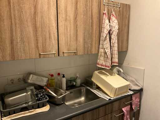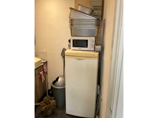 Refrigerator, microwave and various kitchen utensils