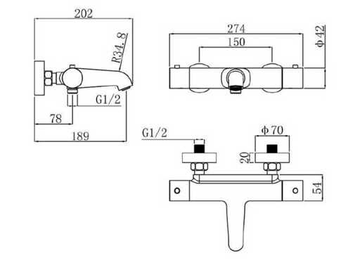 Regn - 10007GM - Thermostatic bath mixer with cooled housing gun metal black