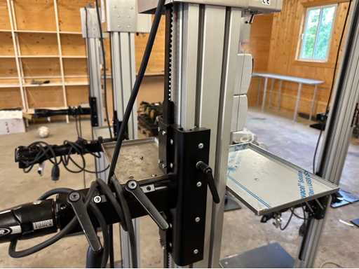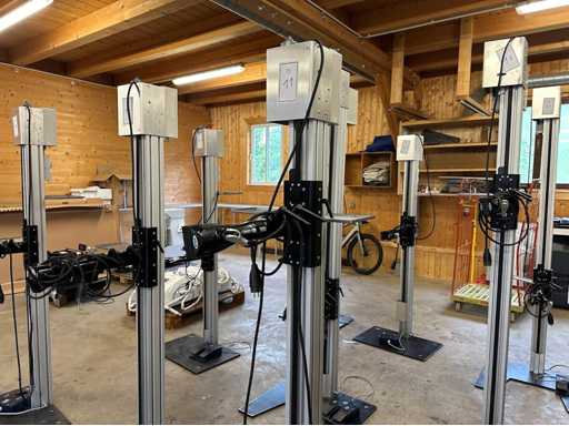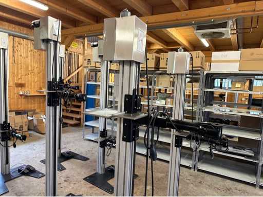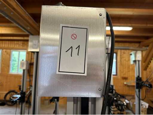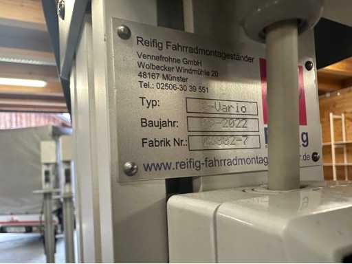 Bicycle mounting stand: Model ”Vario E“ max. bicycle weight 40kg Series no.: 23882-7 Mounting height: approx. 600 to 1700 mm Stand column: silver anodized aluminium profile, 100 x 100 mm Base plate: Steel, painted black, Connection: 230 V / 50 Hz, 16 A VAR claw fastening module (for fastening to the saddle seat tube) incl. 2 pcs. small parts traysweight approx.: 70 kg↵Approx. Onsite Dimension. (l x w x h): 500x700x2200 mm↵
