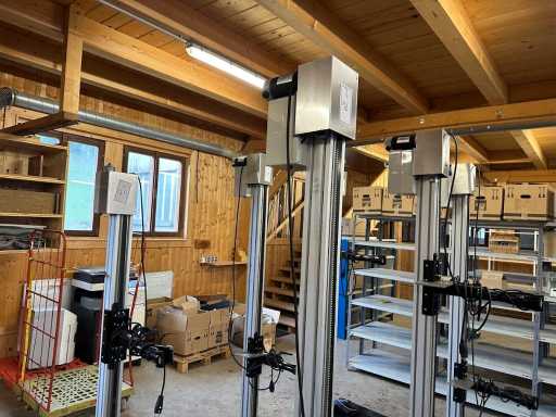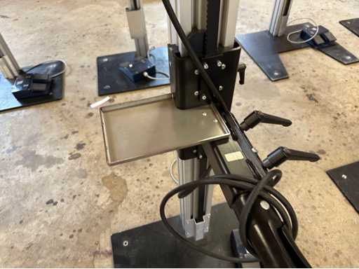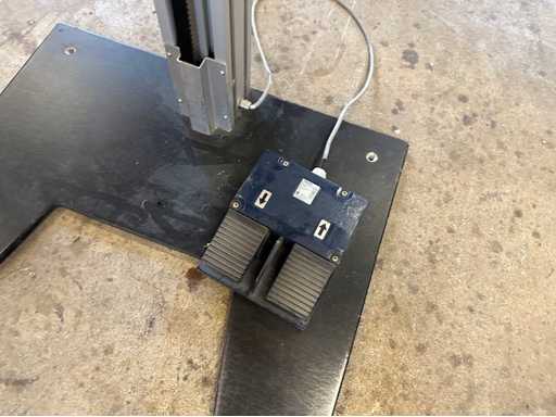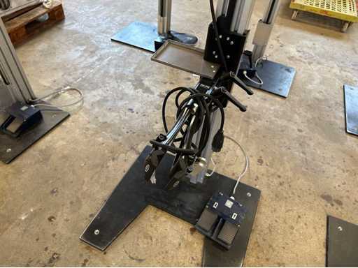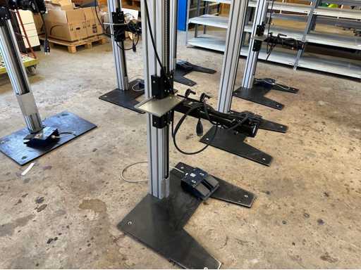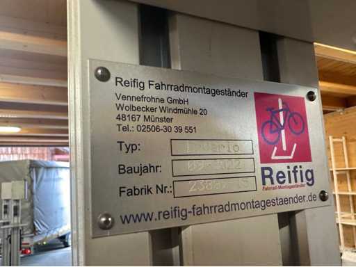 Bicycle mounting stand: Model “Vario L“ max. bicycle weight 70kg Series no.: 23882-15 Stand column: silver anodized aluminium profile, 100 x 100 mm Base plate: Steel, painted black, Connection: 230 V / 50 Hz, 16 A Mounting module VAR claw (for mounting on saddle seat tube) incl. small parts trayweight approx.: 85 kg↵Approx. Onsite Dimension. (l x w x h): 700x900x2400 mm↵