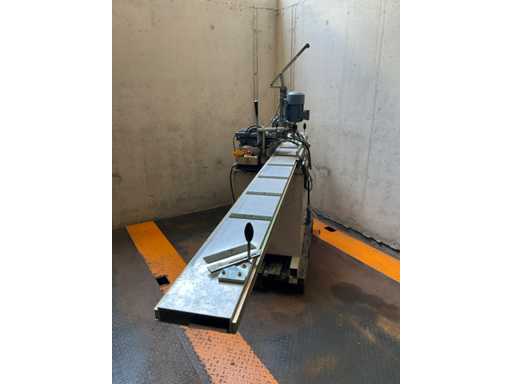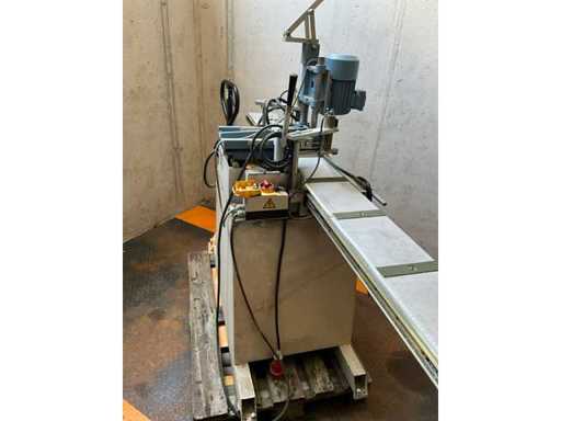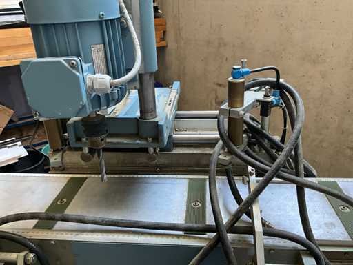 The machine is equipped with a long sliding table of approx. 3 meters, which makes it possible to process long profiles accurately and stably - Applications: Aluminum profile processing, Window and door production, Hinged door operations, Copy drilling, Precision drilling, Series production, Workshop / industry / production environment - Electrical: Connection: 400 V, Frequency: 50 Hz, Current consumption: 1.9 A - Pneumatic: Working pressure: 8 bar - pallet truck available to help load if necessary