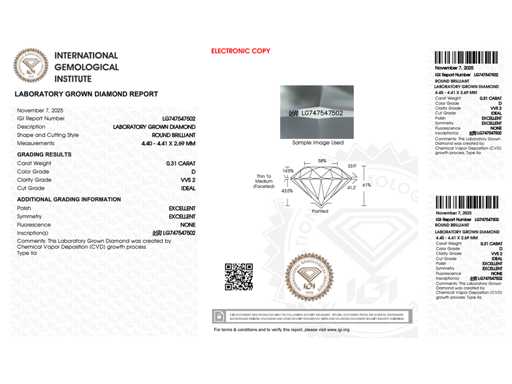 All diamonds have an engraved laser inscription. The quality is taken from the accompanying certificate.