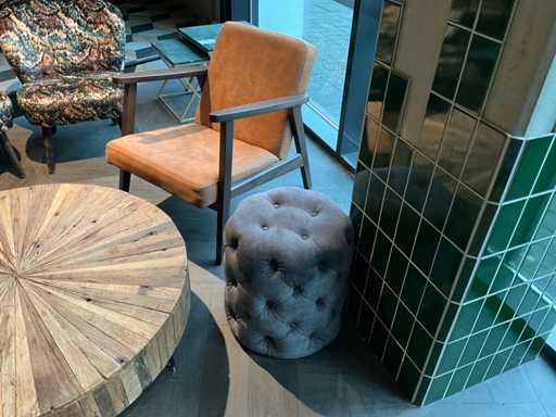 With 1 piece of chair suede upholstered and 1 piece of pouf color gray