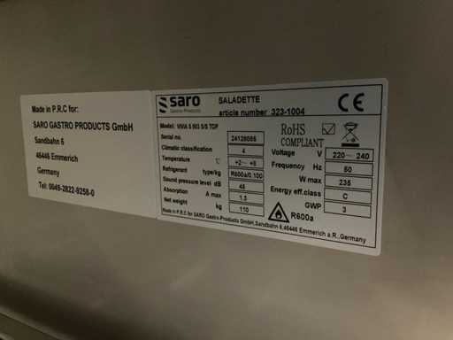 Saro Vivia S 903 S/S Top Refrigerated Workbench
