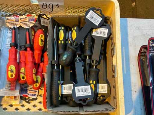 Screwdrivers in plastic crate