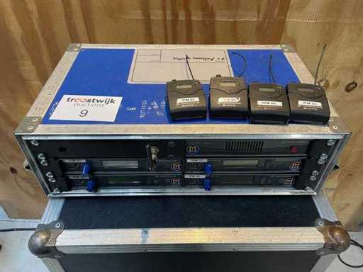 Sennheiser EW300 IEM G2 set (In flight case) - 1x Sennheiser AC2 Transmitter combiner - 4x Sennheiser EW300 IEM G2 Transmitter - 4x Sennheiser EW300 IEM G2 Bodypack Frequency: (518–554 MHz)