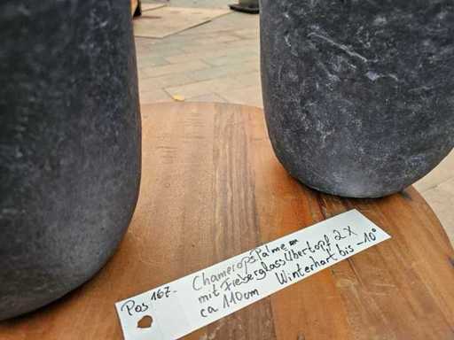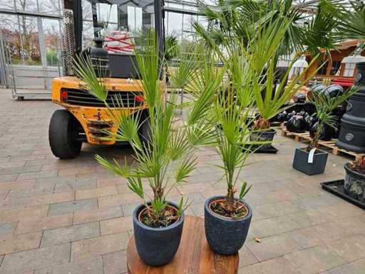Set of 2 Chamaerops dwarf palms in noble fiberglass pots