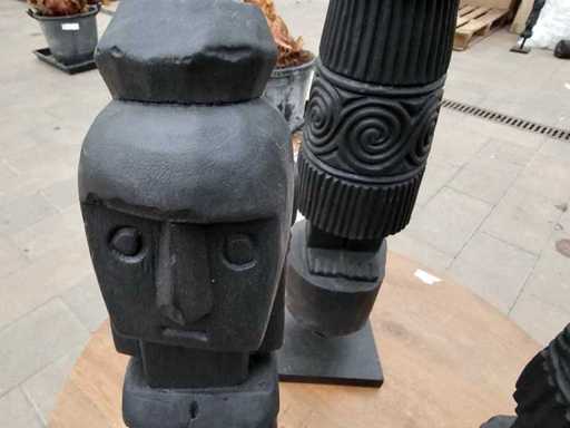 Add a mystical and exotic touch to your ambiance with this impressive set of 3 African cult figures. Each individual sculpture is meticulously handcrafted, reflected in the detailed carvings and unique surface texture. The deep black finish emphasizes the striking shapes, making the set a timeless eye-catcher for indoor spaces or sheltered outdoor areas. The three different sizes allow for a perfect arrangement as a group.