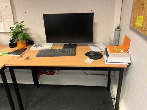 Set of 3 desks + 3 screens + 3 keyboards and mice