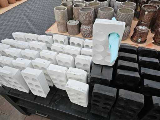 Exclusive set of 60 handmade napkin holders in the distinctive 'African Cult' design. These stylish accessories captivate with their minimalist, architectural design and the contrasting colour combination of timeless black and rustic white. Each piece is handmade and has an individual character. Due to the heavy quality and the unusual hole design, they are not only functional, but also a sculptural highlight for any table decoration or catering facility.