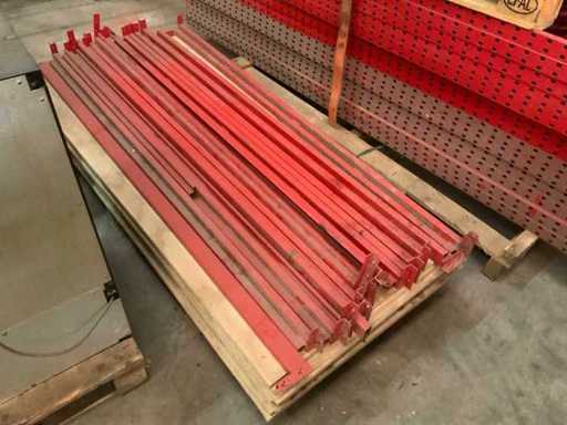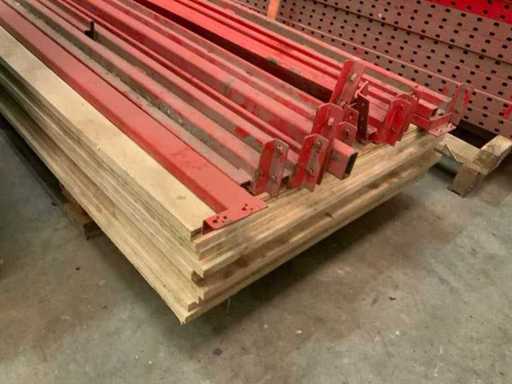 Consisting of 8 uprights, dimensions: H2300 x W800 mm, 15 uprights. dimensions: H2900 x W800mm, 2 pallets with beams, length: 1810mm and 10 plywood shelves