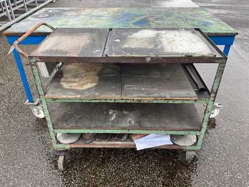 Table size approximately: 2040x1040x980 mm, shelf trolley size approximately: 1250x600x1020 mm