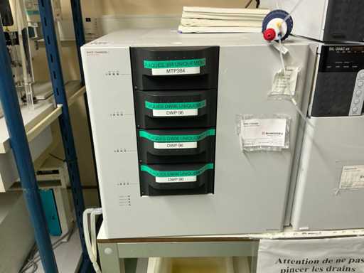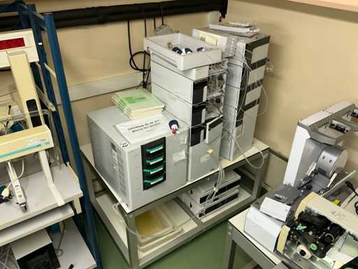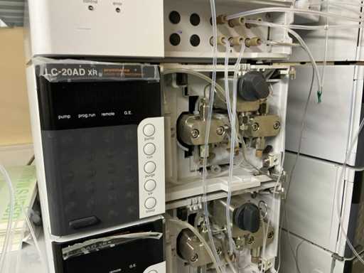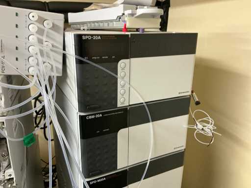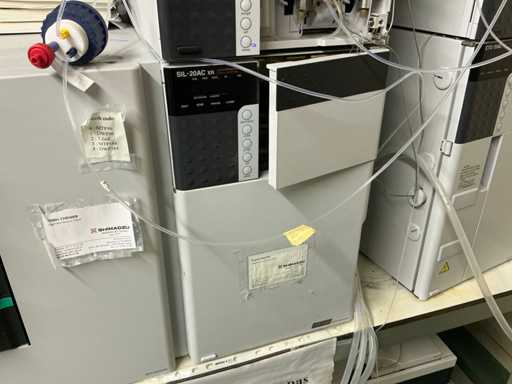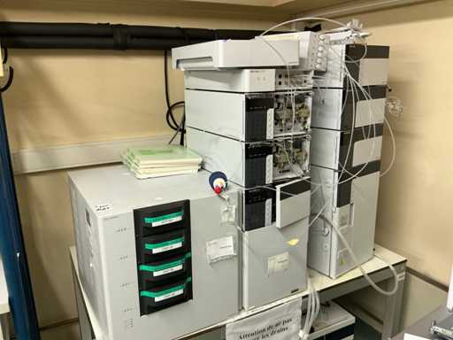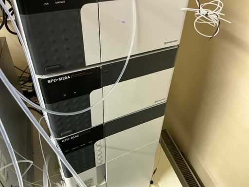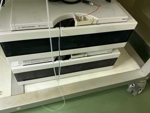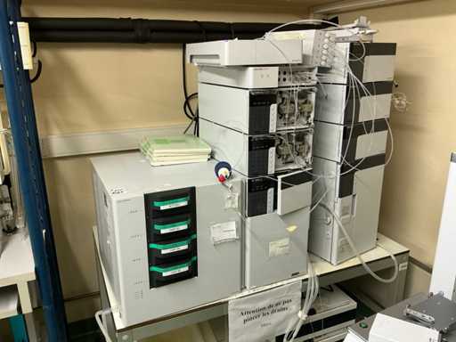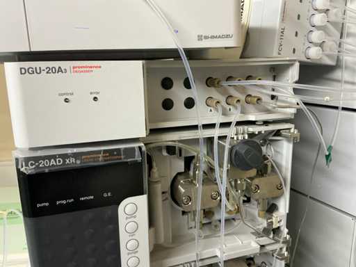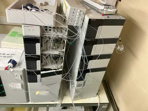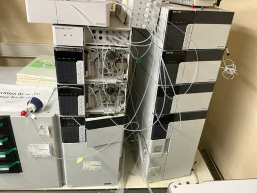 String composed of: - rack changer - DGU-20A3 Clears - 2 LC-20AD xr Liquid Chromatograph - SIL-20AC xr Auto Sampler -UFLC XR - FCV-11AL Valve unit - SPD-20A Uv/VIS detector - CBM-20A communication module -SPD-M20A diode array detector - CTO-20AC column oven - 2 1290 Infinity II Agilent - with 2 bins - Mobile table (120x80x65)