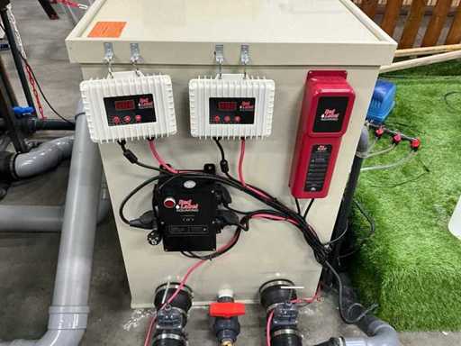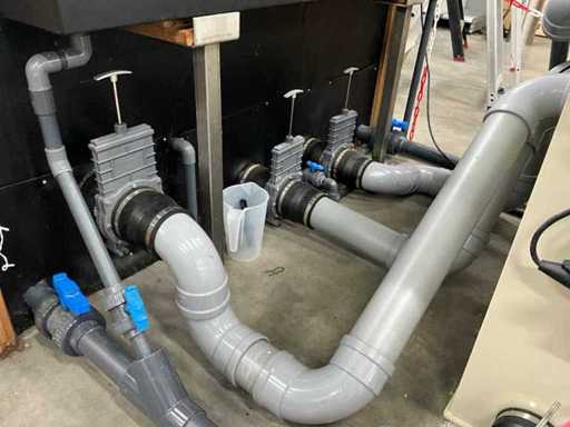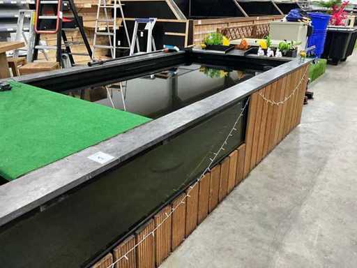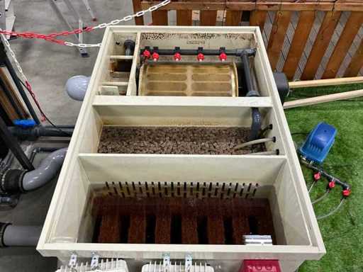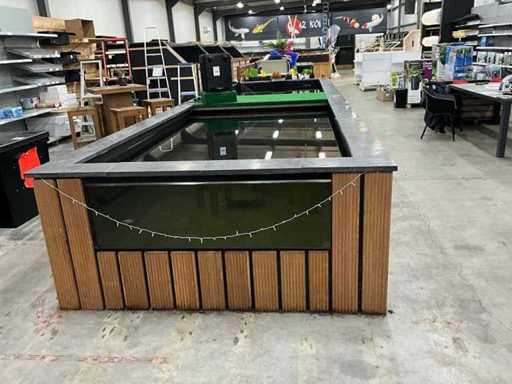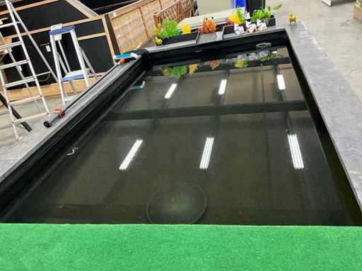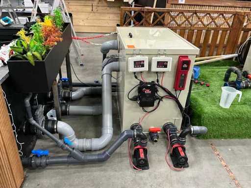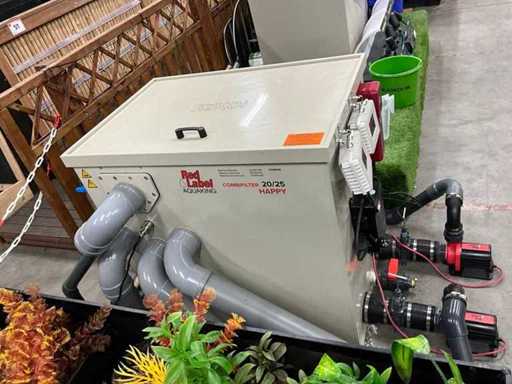 Consisting of "Aquaking" Red Label Happy 20/25 combi filter with 2 water pumps, control box and UV lamp, total size 103x70x100 cm; Fish tank size 700x210x92 cm. This lot must be delivered broom clean.