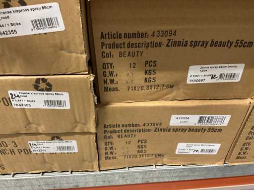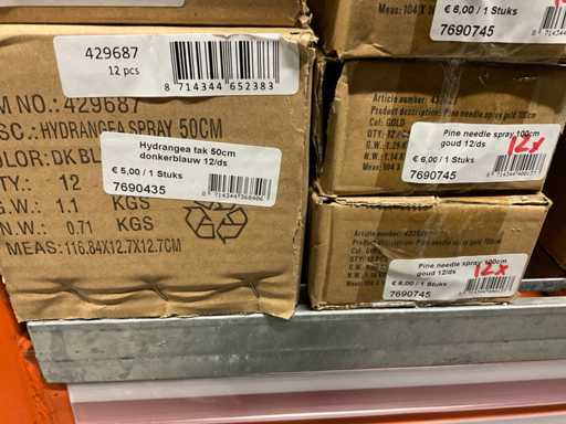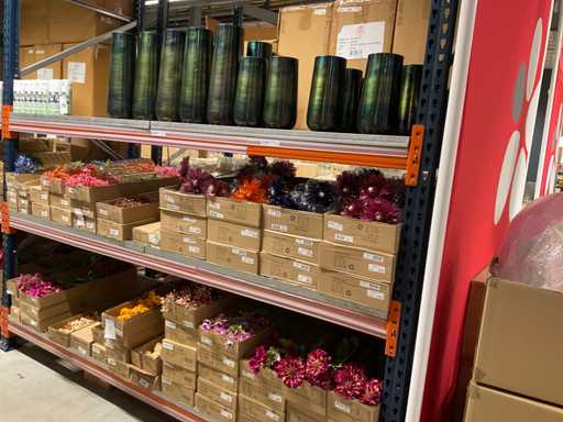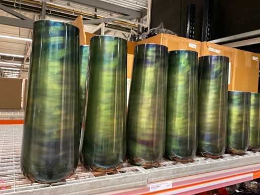 Contents section pallet rack with vases ø18 cm, height 45 cm and ø 15 height 30 cm