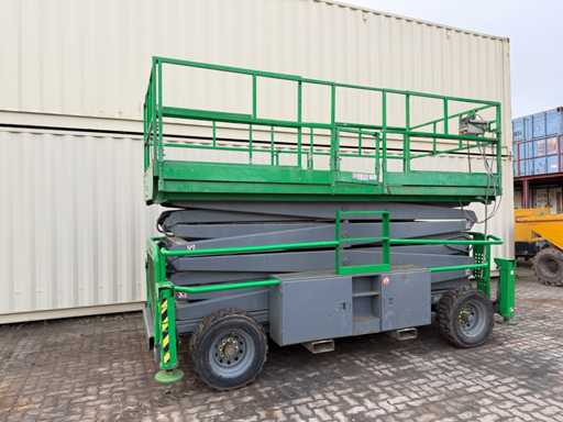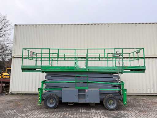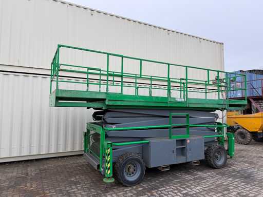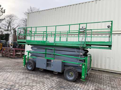 - Ready to drive; - Working height: approx. 17.2 meters; - Platform height: approx. 15.2 meters; - Platform hydraulically widened (see photos!) - 4x4 drive; - Kubota diesel engine; - Condition see photos; - Travel drive fails sporadically; - aut. Leveling for support is partially suspended; - Viewing recommended;