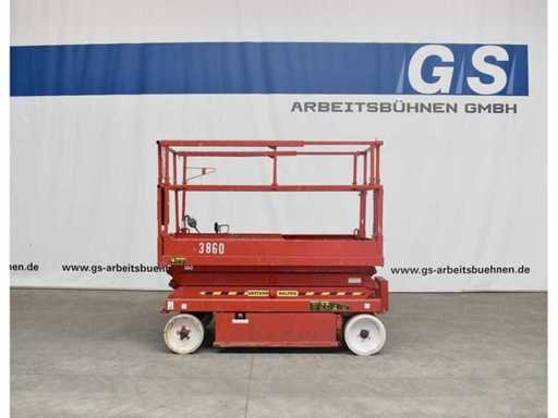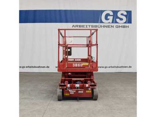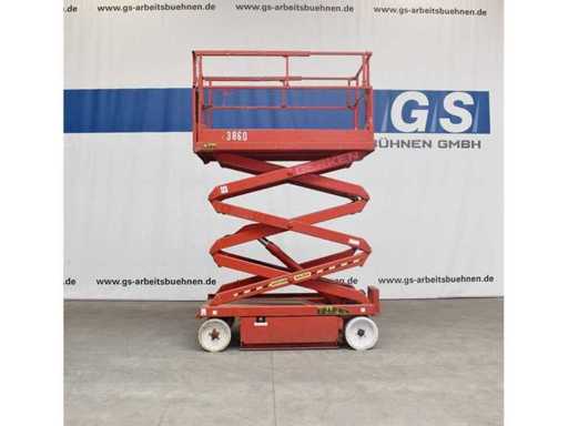 Internal No. 3860, ground clearance 0.08 m, lifting capacity on extension 136 kg, height transport position without railing 1.18 m, white tires, anchorage points for restraint systems (PPE) available. Video link https://youtu.be/jfIEXKxBI6M