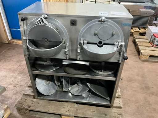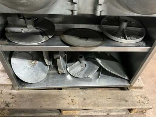 Dimensions approximately: 600x1020x1150 mm, cutting blade Ø approx 340 mm, 450x650x600 mm, cutting blade Ø approx 300 mm