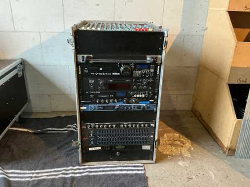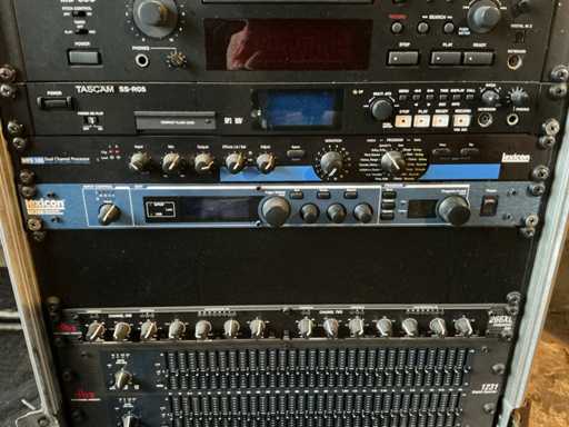Consisting of Soundcraft K1 analog mixing console, Numark MP3 CD player, Tascam MD350 minidisc player, Tascam SS-R05 compact flash player, Lexicom MX300 reverb, DBX 266XL compressor limiter, DBX 1231 Graphic Equalizer, Mipro in ear transmitter with belt clip