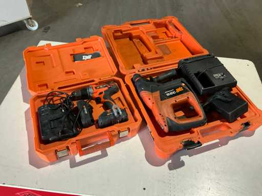 1x 328 rotary hammer, with 2x 28V battery and charger, s/n 304000541; 1x BS18 drill/driver, with 2x 18V battery and charger, s/n 703000358