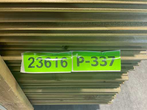 Spruce band parts green impregnated, with a size of 224 x 14.5 x 1.8 cm each.